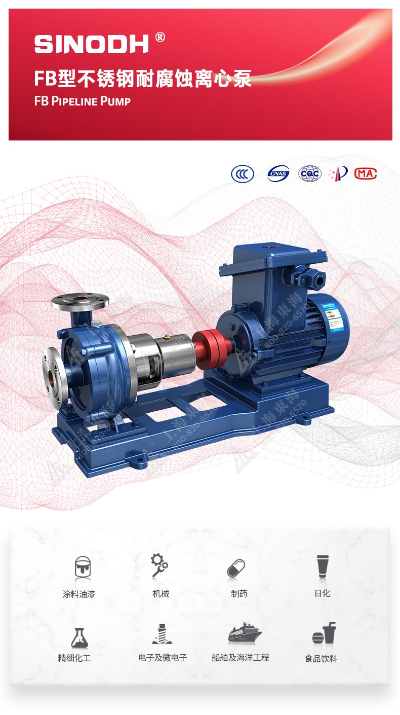 FB型不锈钢单级单吸悬臂式耐腐蚀离心泵,为开云足球_开云(中国)自主研发生产。本系列产品适用于输送不含固体颗粒,有腐蚀性液体。被输送介质温度为-20℃~200℃,泵的进口压力不能大于0.2MPa,广泛用于石油、化工、冶金、合成纤维、制药、食品、酿造等工业部门,也可供工矿、企业及城市供水、排水之用。